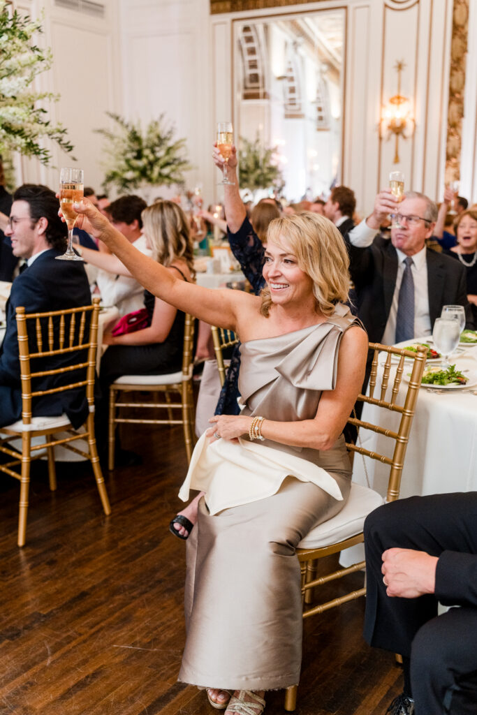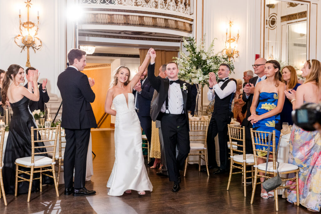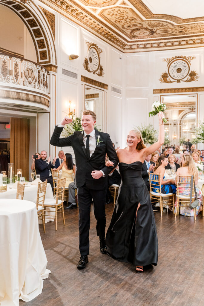 The celebration continued at the iconic Colony Club. Stepping into this magnificent third floor ballroom is like being transported to an era of pure artistic grandeur. The ornate details and massive crystal chandeliers provide an incredible backdrop for a legacy event. The energy was incredibly high as the couple made their grand entrance and the dance floor opened. We know exactly where the photographer needs to stand to get the perfect shot of a vibrant reception, and the cinematographer knows exactly how to move around them to capture the sweeping motion. The final result is a perfectly matched aesthetic where the lighting, the editing style, and the emotional pacing are entirely synchronized.