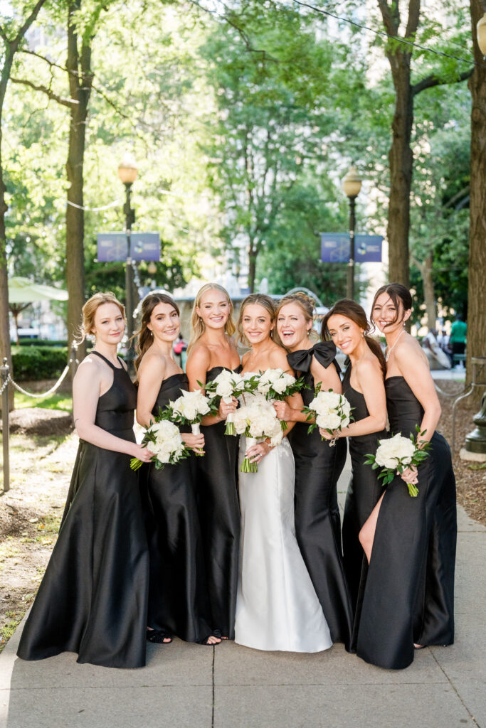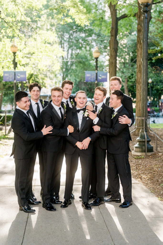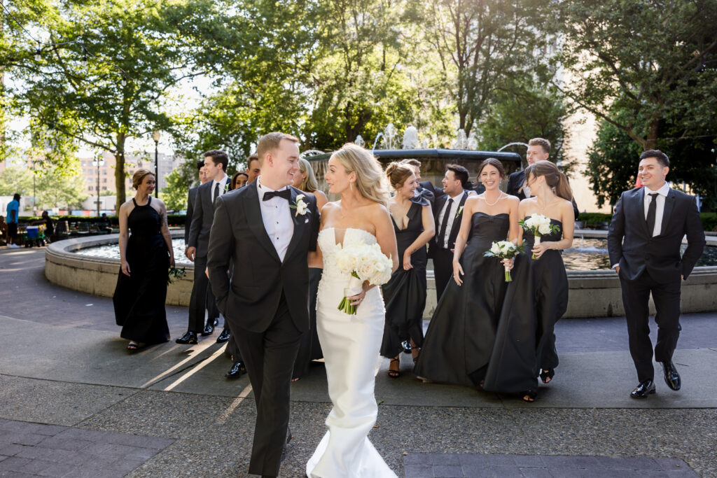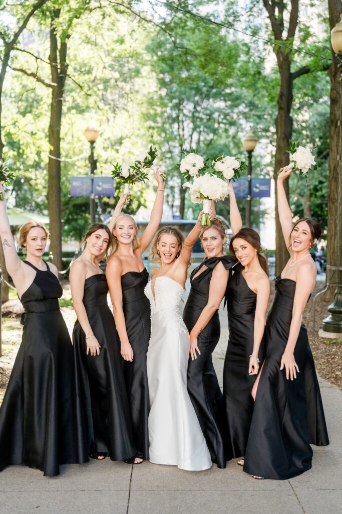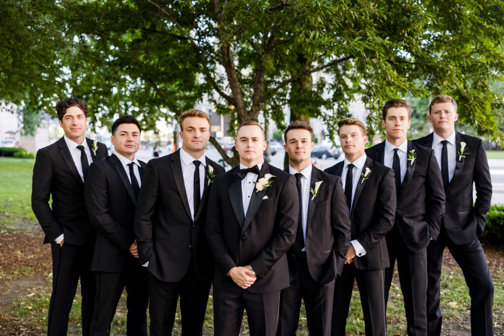 Following the ceremony, we utilized the vibrant energy of downtown Detroit to capture their editorial portraits. A city wedding requires a team that can adapt to changing light and bustling environments instantly. Operating on the exact same wavelength allowed our photographer and cinematographer to maximize the time Jack and Francesca spent with their bridal party. We captured stunning, true to life portraits and sweeping cinematic motion simultaneously. This streamlined experience gave the couple more freedom to simply enjoy the celebration with their closest friends before the evening began.