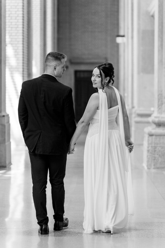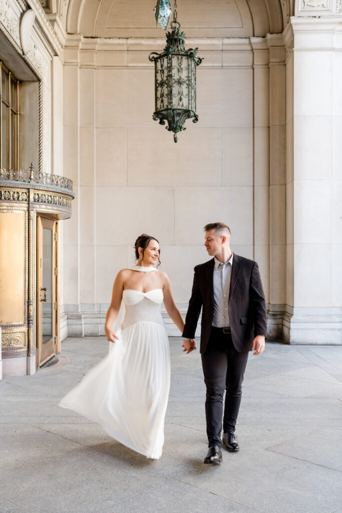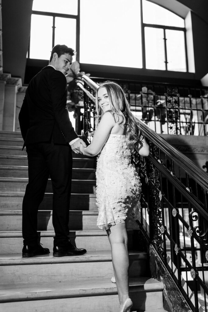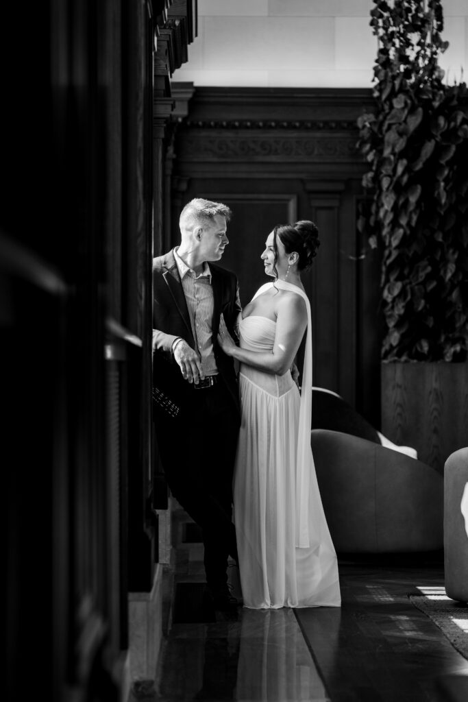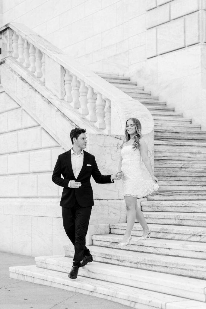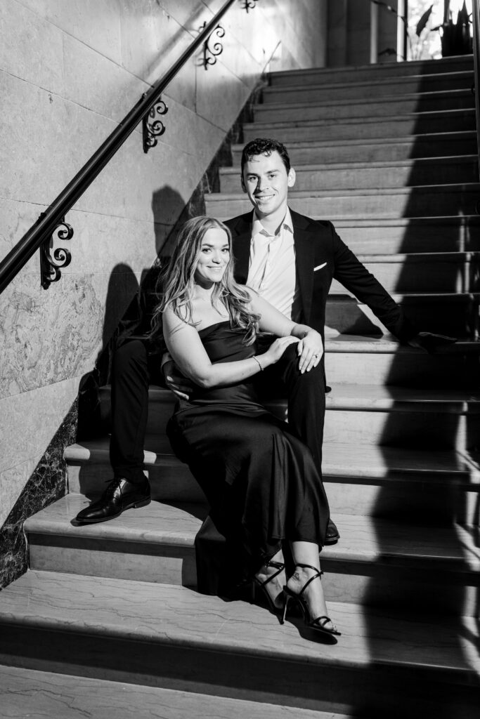 We encourage you to bring two distinct looks to your session. Many of our couples love having one formal, dressy option and one elevated casual outfit. This provides effortless variety in your final gallery and allows us to match your aesthetic to different architectural backgrounds or natural landscapes.