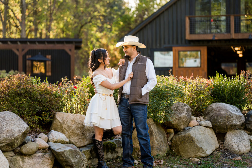 We highly suggest selecting a sophisticated color palette that you both love. Choosing outfits that complement each other within those tones creates a cohesive, editorial aesthetic. If one of you selects a bolder color, the other can balance it with a beautiful neutral tone. This ensures your final images remain timeless and highlight your connection flawlessly.