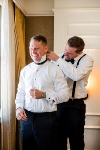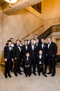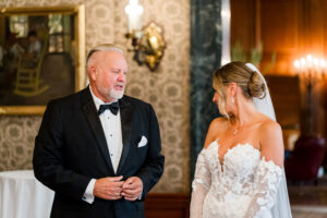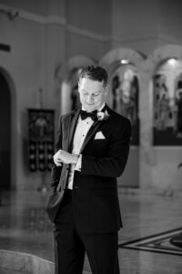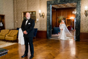 The morning began with quiet intentionality within the historic rooms of the DAC. We documented the bespoke details Jeff and Nicole so carefully curated before transitioning into the joyful, unscripted moments of their preparations. Witnessing the powerful first looks with Nicole’s father and brother, alongside the deep camaraderie of Jeff and his groomsmen, highlighted the profound importance of the family that surrounds them.