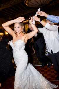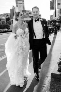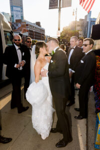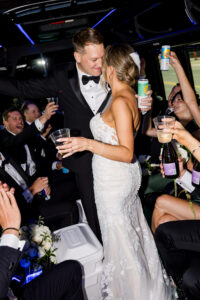 Following the ceremony, the celebration took to the streets of downtown Detroit. Traveling via a luxury party bus, we captured the festive, high-energy dynamic of the bridal party as they made their way back to the Detroit Athletic Club.