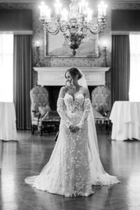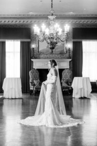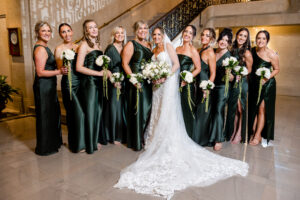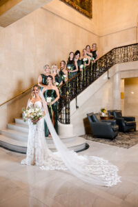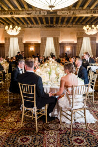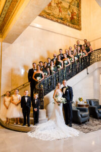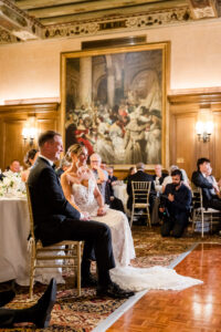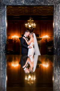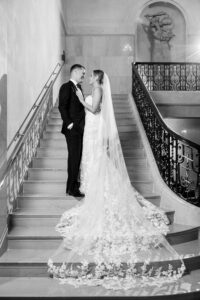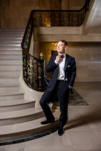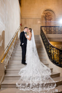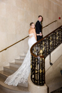 As an architectural masterpiece, the DAC provided a historic backdrop that perfectly mirrored Jeff and Nicole’s elegant aesthetic. Before joining their guests, we stepped away with the couple for an intimate, editorial portrait session, capturing timeless moments on the grand staircase and within the opulent, wood-paneled Reading Room.