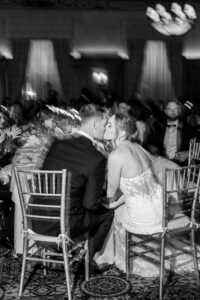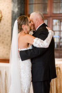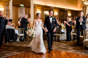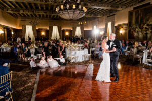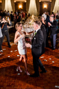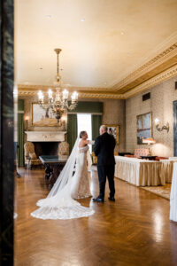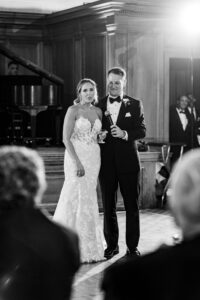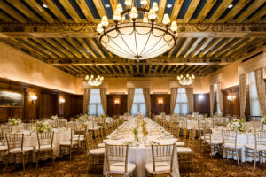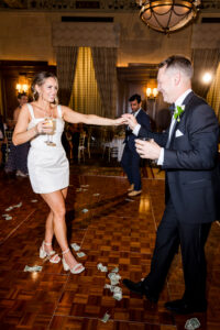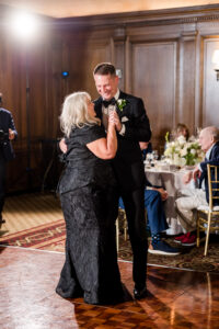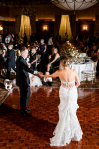 Bride and groom sharing their first dance in the elegant ballroom of the Detroit Athletic Club, captured by Detroit luxury wedding photographers FM Visuals.