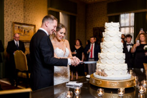 The celebration then transitioned seamlessly into an elegant cocktail hour. We documented the sophisticated details of the room and the traditional cutting of the cake, setting a beautifully refined tone just before the main reception officially began.