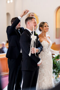 The ceremony unfolded at the breathtaking Annunciation Greek Orthodox Cathedral. Highlighting the rich traditions of a Greek Orthodox service—from the ceremonial crowning to the sharing of the common cup—was a moment to be captured!